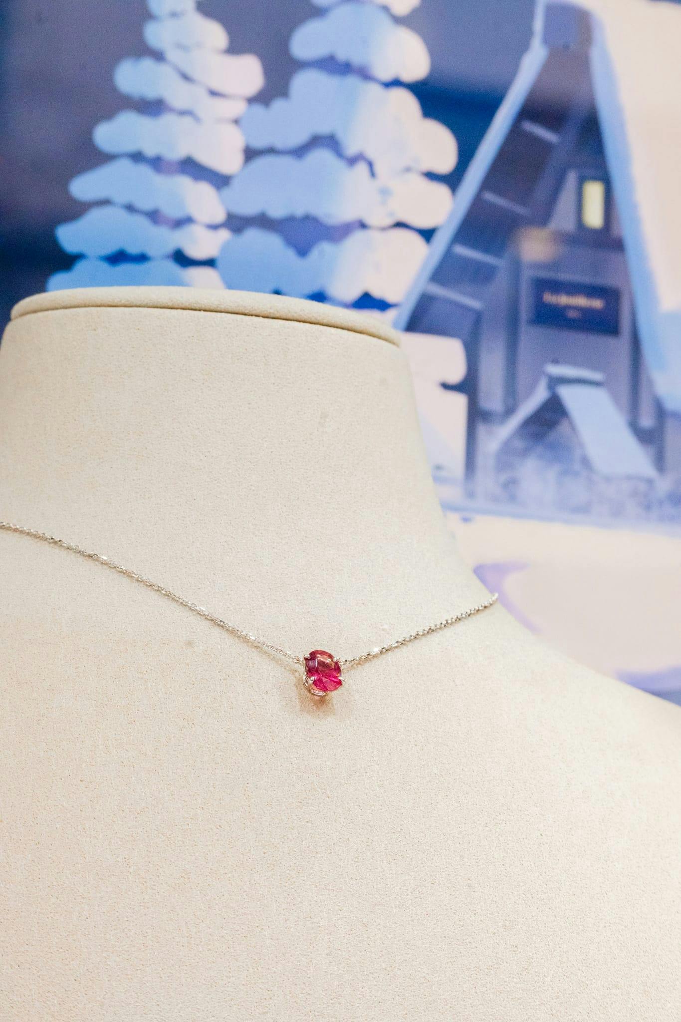 Raffiné et délicat, le pendentif Katherine met en valeur une tourmaline rose subtilement montée sur une chaîne en or blanc 18 carats. Son design épuré sublime la beauté naturelle de la pierre, offrant un éclat tendre et élégant. Un bijou léger et raffiné, parfait pour apporter une touche de couleur et de sophistication au quotidien.